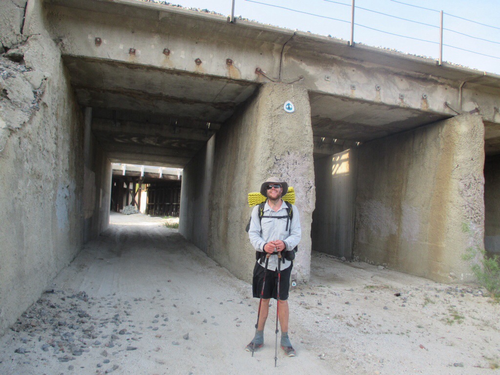 We woke up the next morning ready to hike from the mountains down to the desert floor. It is only 4 miles straight down, but stretched over 16 miles of switchbacks. The ridge consisted of overgrown thorny bushes we had to hike through, which wasn’t fun because it was extremely hot and we were wearing shorts. There was very little shade, but when we did find some we all congregated around it to cool down. Lots of us had our sun umbrellas out as well. A few hikers encountered rattlesnakes, but Lingo and I didn’t see any. When we finally got to the bottom there was a faucet where we all got water. A couple of hikers ran out of water before getting to the faucet, so one of their friends named Choop Choop hiked a bunch of water back UP the ridge to help them. The day wasn’t over for us once we got to the faucet. We still had another few miles to hike to our destination at trail angel’s Ziggy and The Bear’s house. Along the way we were the recipients of some trail magic! We got beer from Lightening Rod’s father in law, Jim.