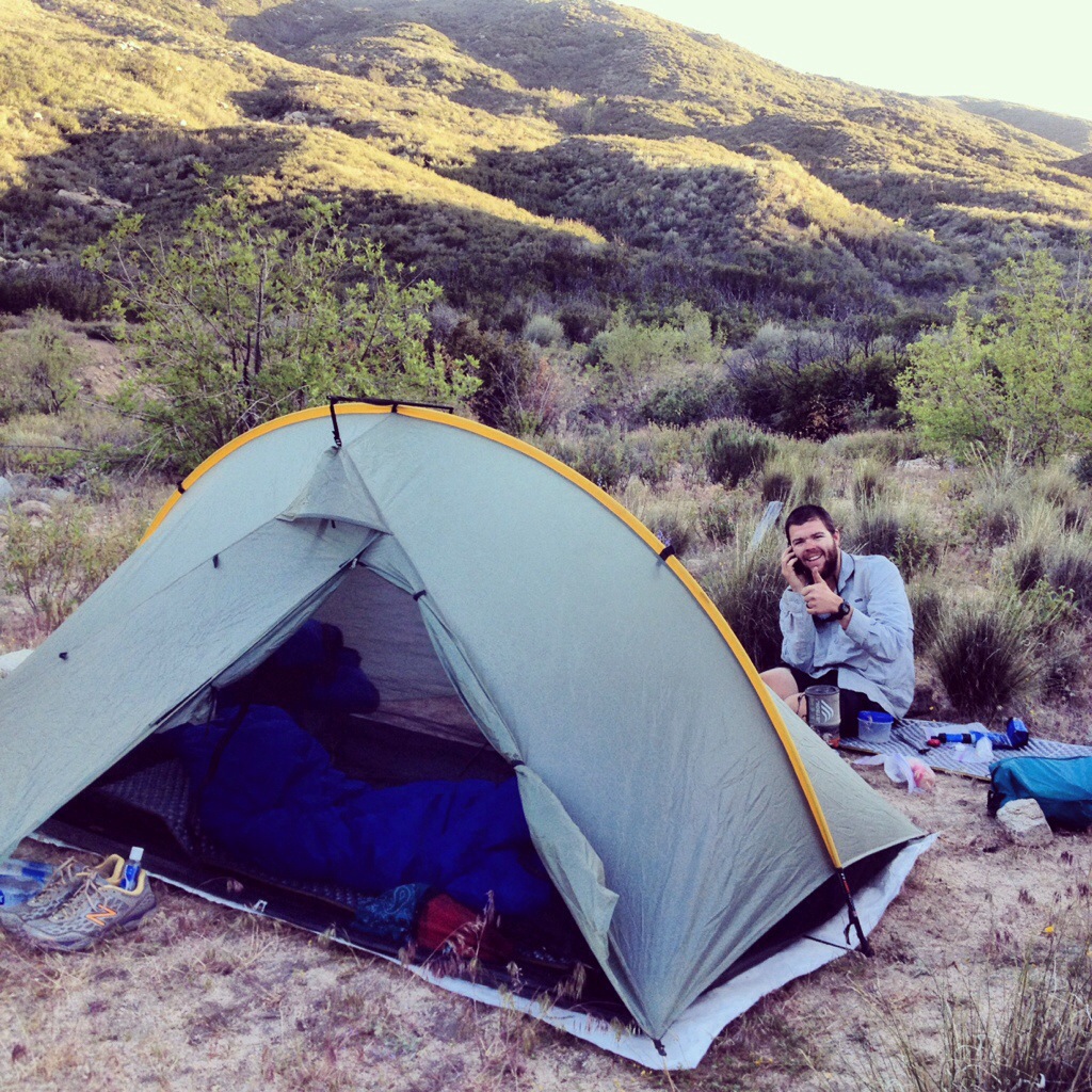 This was the start of a whole new type of desert. We hiked along the California Aqueduct through the night. I heard stories from hikers who had previously done this section of the hike, that in years prior, hiking along the aqueduct was torture. They said they hiked during the day, and that the sun was scorching hot, which no shade, and that you heard the water rushing under ground below you, with no access to it. I’m glad we hiked during the night because it was nice and cool. When we decided to stop for the night it was close to midnight. The trail had turned into a dirt road, and it was hard to tell what was private land and what was okay to camp on. We had only stepped off the road for a few seconds when a truck came blaring by. “Turn off your headlamp!” Shouted Lingo. We dropped down behind some cactus so that we would not be seen. It was a little scary there, being so close to “town,” and not knowing who could drive by. We weren’t sure if we were on someone’s property, so we set our tent up in a less exposed spot, with Joshua trees and cactus around us.
