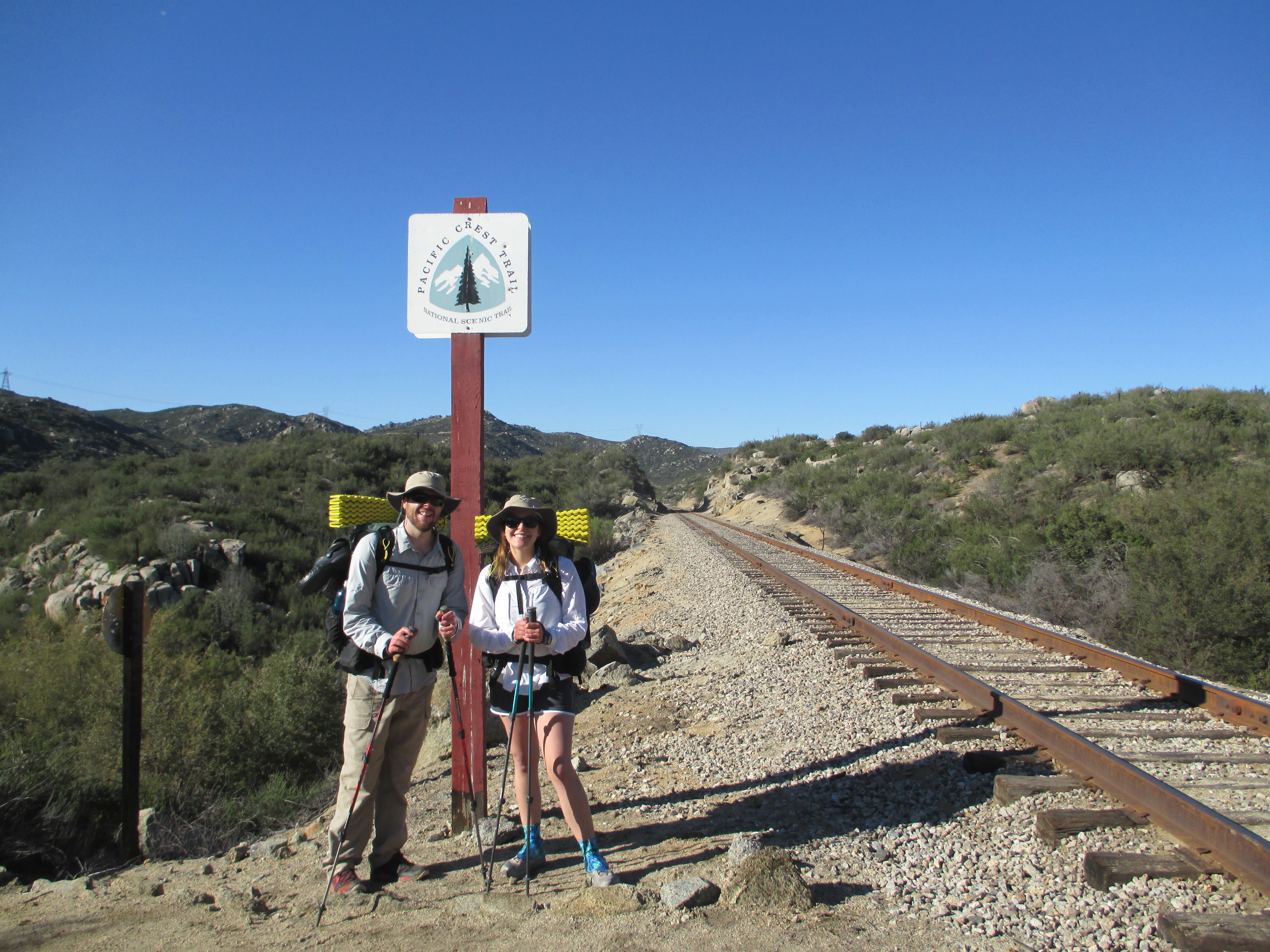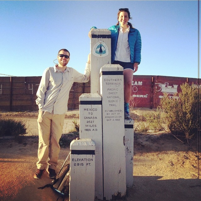 I could barely sleep at all last night. I was so nervous! Chas and I didn’t finish getting everything put together until a little after 11pm. We checked our packs to make sure we had everything together, then double and triple checked. I finally fell asleep around 1am, and then woke up at 4am to start our very first day hiking the PCT! Chas made me a breakfast sandwich, and we drank our coffee while stretching in his mom’s kitchen. We left to pick up Matt around 5am, and it took about an hour to drive to the Southern Terminus at the Mexican border in Campo, California. We all had butterflies the whole drive. Once exiting the freeway, we had to take dirt roads, winding through what felt like the middle of nowhere. We went up a hill, and saw the monument in the distance. We were almost there. The sun had just started to rise when Chas’ mom dropped us off. She took all our photos, hugged us, and watched us hike onto the trail. I was so happy she was there to send us off.